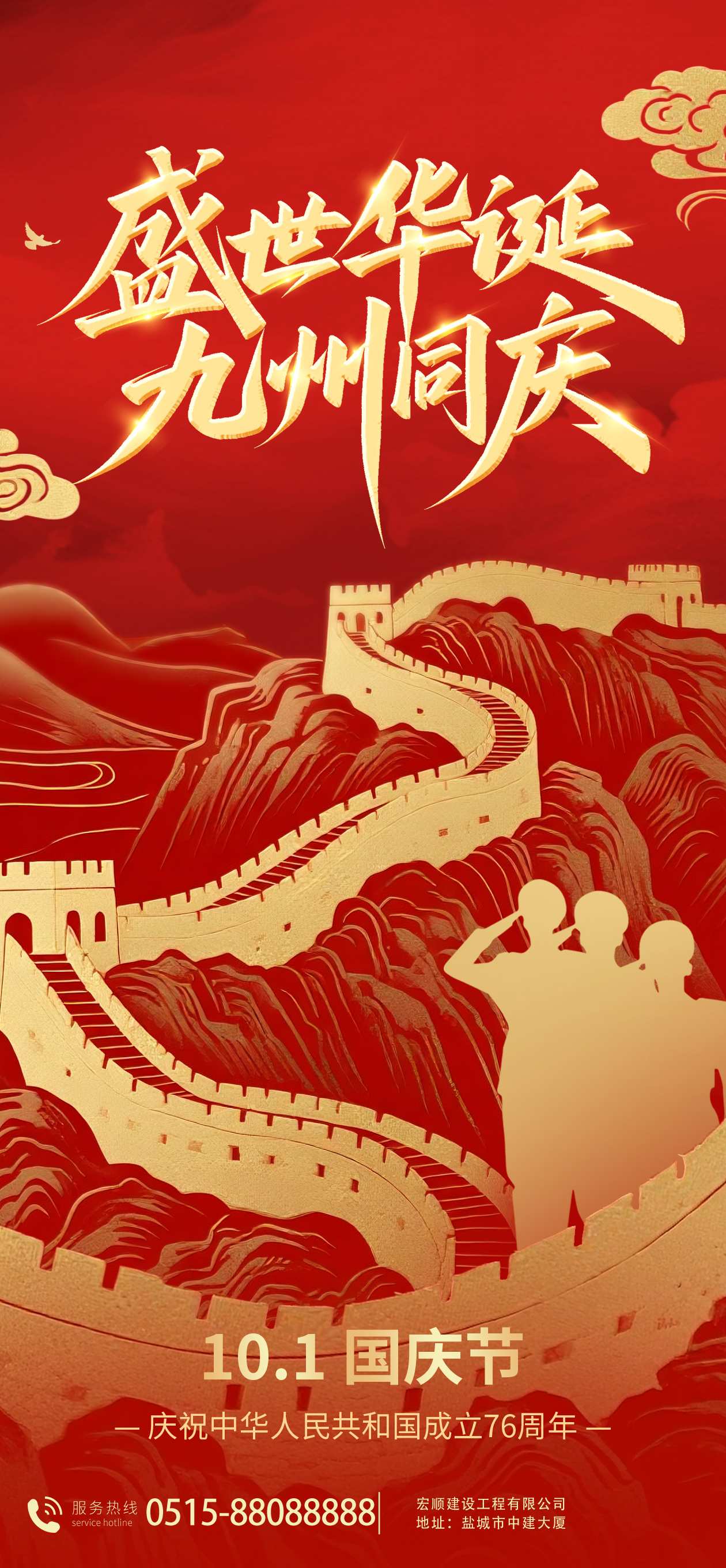 作为城市建设的筑梦者,我们深知每一栋拔地而起的高楼都凝聚着建设者的汗水,每一条延伸向远方的道路都承载着时代的梦想。在这个特殊的日子里,我们不仅要为祖国的辉煌成就感到自豪,更要为能参与国家建设而感到无比光荣。国庆长假将至,愿各位在享受美好假期的同时,也能感受到我们最真挚的祝福。无论是与家人团聚的天伦之乐,还是外出游历的惬意时光,都愿您收获满满的幸福与欢乐。让我们暂别繁忙的工作,在秋日的暖阳中积蓄力量,以更饱满的热情迎接未来的挑战。宏顺建设将始终秉持"质量为本、诚信立业"的企业精神,与您携手共创美好明天。